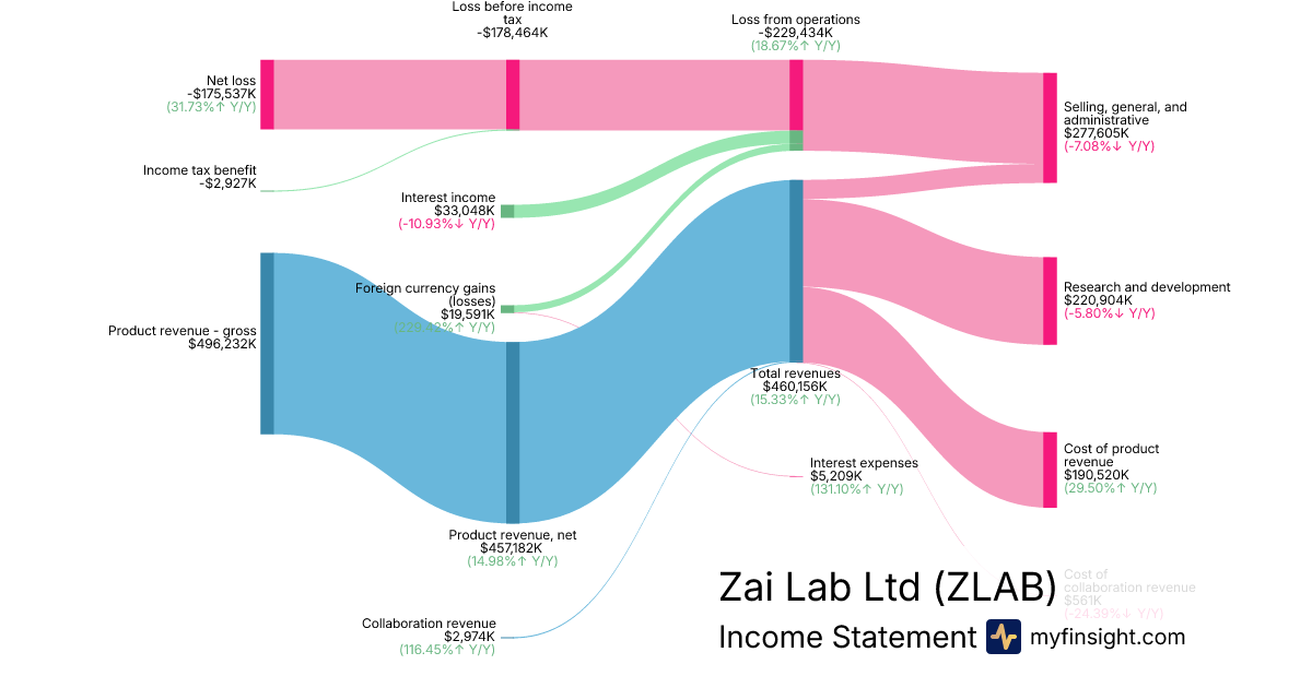 For the year ending 2025-12-31, ZLAB made $460,156K in revenue. -$175,537K in net income. Net profit margin of -38.15%.