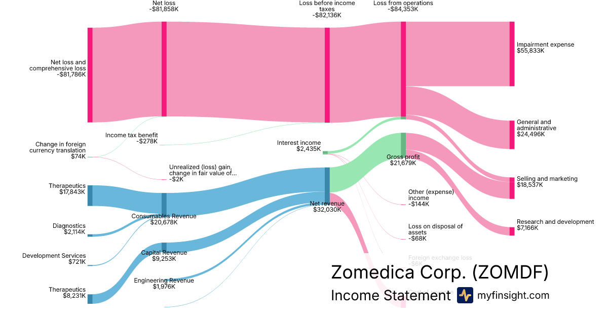 For the year ending 2025-12-31, ZOMDF made $32,030K in revenue. -$81,786K in net income. Net profit margin of -255.34%.
